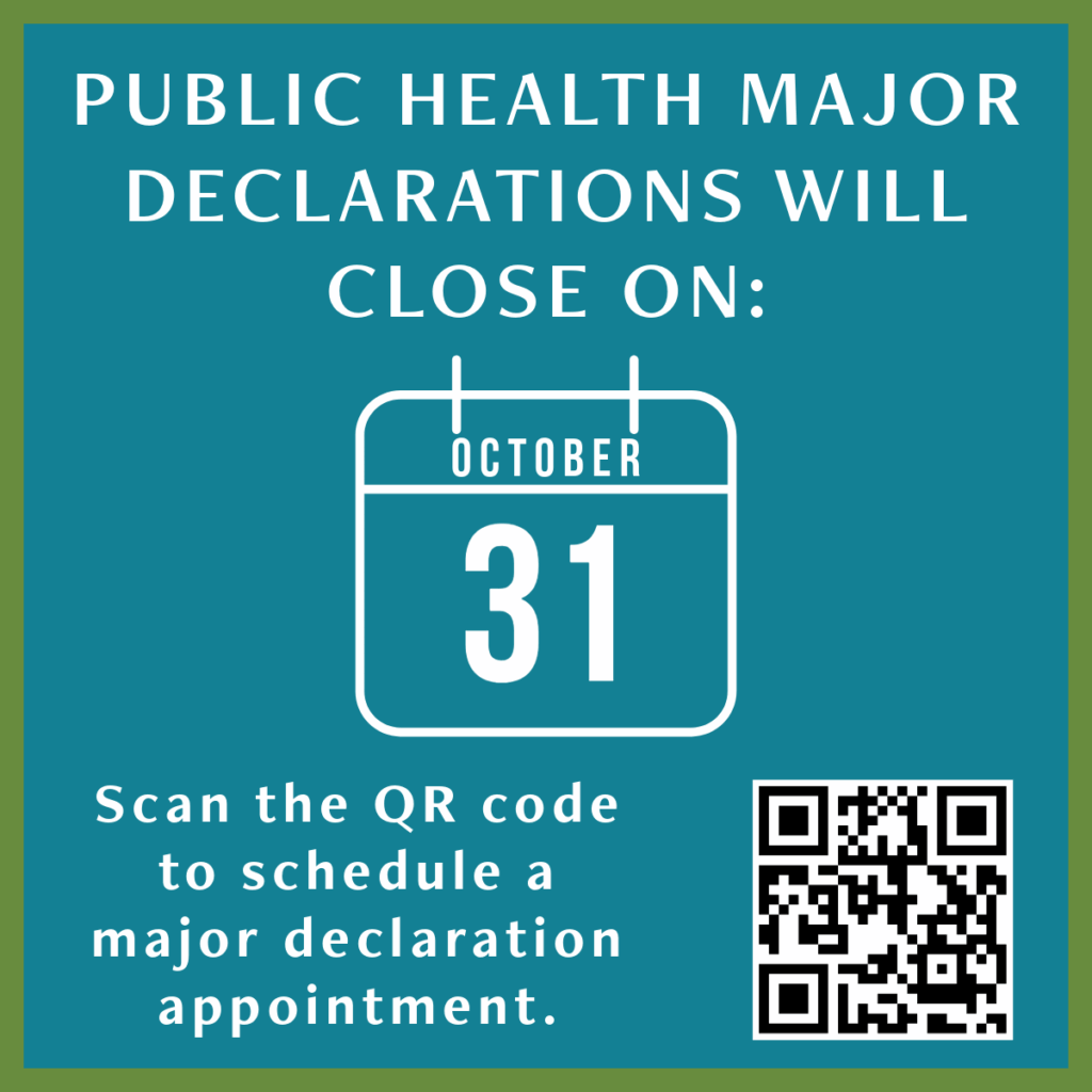 Students who need to declare public health as their major will need to do so before October 31st. Major declaration appointments will reopen on November 17th. Make an in-person appointment to declare the major here: https://sphu.as.me/