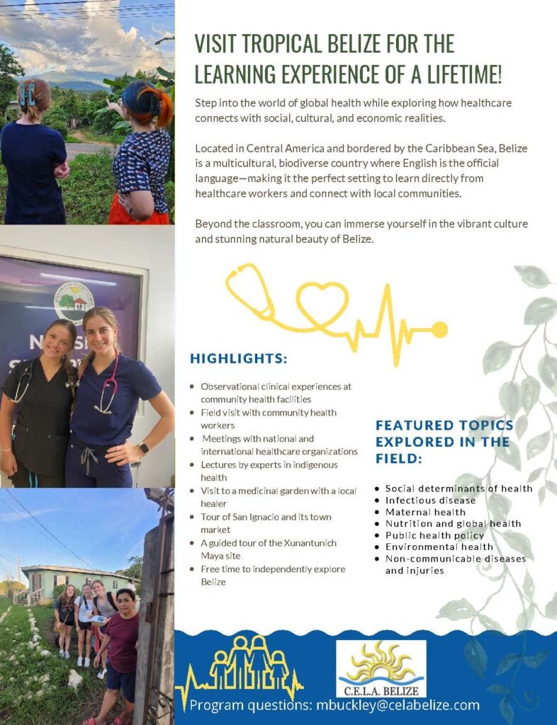 In addition to this course, Center For Engaged Learning Abroad (CELA) offers courses in Nursing In Belize, Tropical Marine Ecology, Large Animal Veterinary Practice In The Tropics, and Wildlife Health And Conservation. See more and apply here: https://celabelize.com/